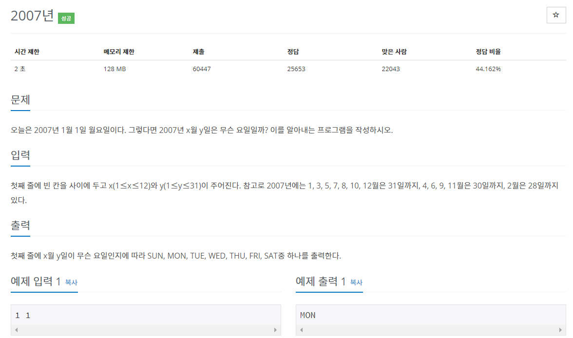 월, 날짜를 입력 받고 1월 1일로부터 얼마나 지났는지 일수를 더한 후 현재 날짜를 더해준다.